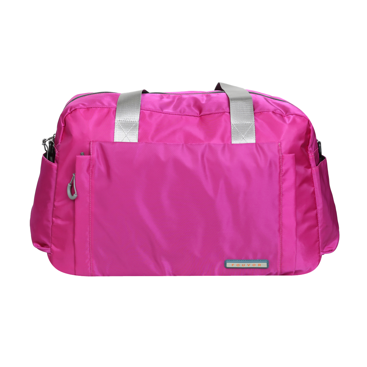 ساک دستی فوور مدل F2058-03 دارای رنگ مشکی و صورتی، آبی، بنفش و فیروزه ای می باشد، که مناسب افراد شیک پوش و مشکل پسند می باشد. این ساک فوق العاده زیبا و باکیفیت، ایده آل برای سفرهای کوتاه، داخل کابین هواپیما، همراهی عالی برای تمرین روزانه یا به عنوان دومین وسیله دستی در تعطیلات آخر هفته شما، هرگز در طول کار روزانه لباس های باشگاه یا وسایل شخصی خود را از دست نخواهید داد و نیازهای شما را در سفرهای رفت و برگشت روزانه برآورده می کند. از طراحی بسیار زیبای این ساک که بگذریم، دارای طراحی چند محفظه ای می باشد که دسترسی کامل به محفظه اصلی با باز شدن زیپ اصلی که به صورت کامل فضای ساک می باشد که دارای یک فضای زیپ دار در دیواره و فضای پارچه ای در دیواره جهت سازماندهی لوازم خرده ریز شما می باشد. در قسمت چپ و راست این محصول دو جیب وجود دارد. یک جیب زیپ دار در قسمت جلو ، و در قسمت پشت محصول هم یک فضای زیپ دار وجود دارد که همه لوازم جانبی و ابزارهای شما با دسترسی آسان، هدفون یا هر وسیله جانبی دیگری را در خود جای می دهد. جنس این محصول از پارچه پلی استر با کیفیت بالا و مقاوم با روکش نایلونی با چگالی بالا ساخته شده است که این محصول را بسیار مقاوم کرده است. تسمه های دسته از نوار با کیفیت استفاده شده است. آستر داخلی این محصول برند تولید کننده بر روی آن قید شده است. این محصول را هم به صورت دستی و هم با بند دوشی می توان استفاده کرد. زیپ و سرزیپ های زیبا و با کیفیت این ساک از دیگر ویژگی های چشمگیر این محصول می باشد. وزن این محصول 520 گرم می باشد.