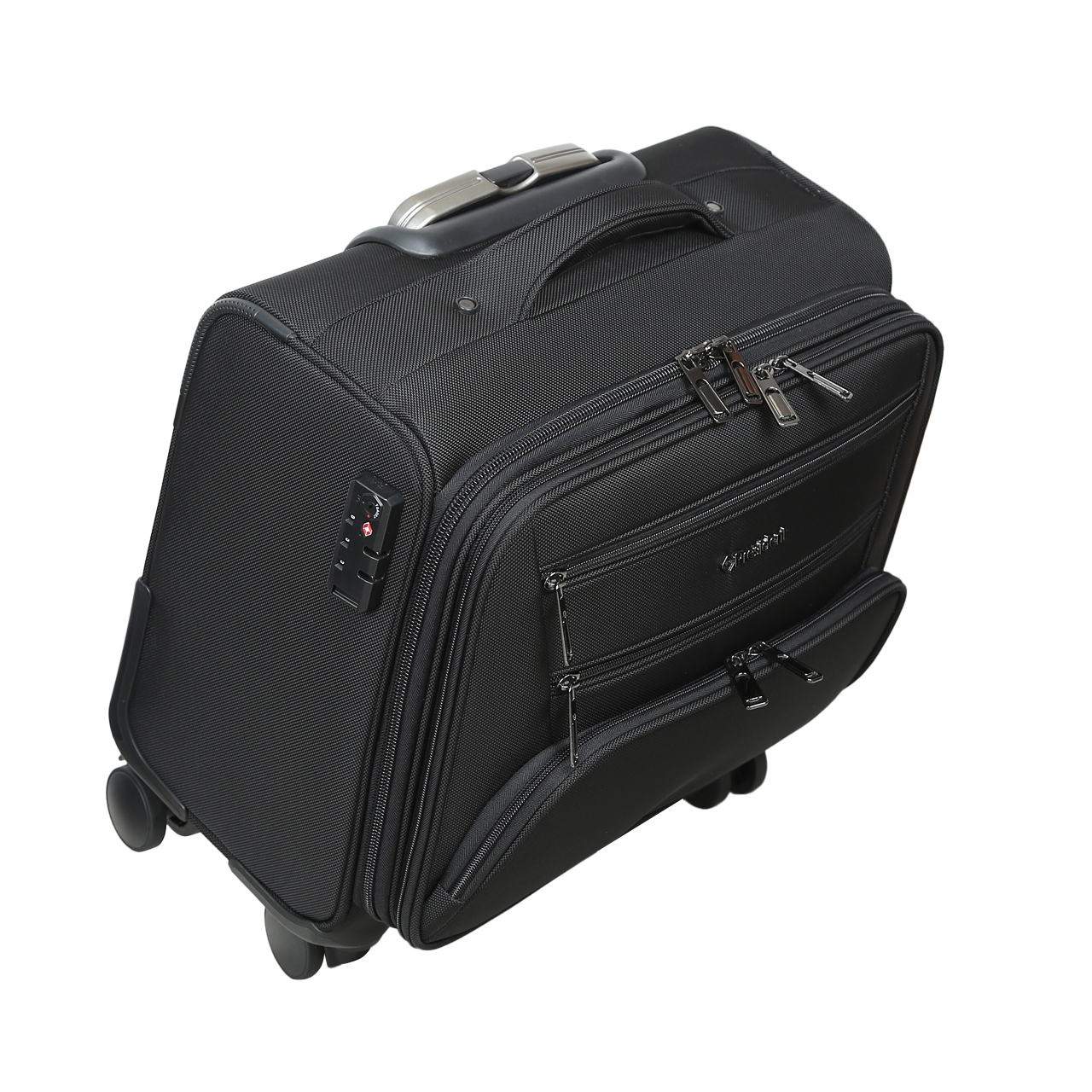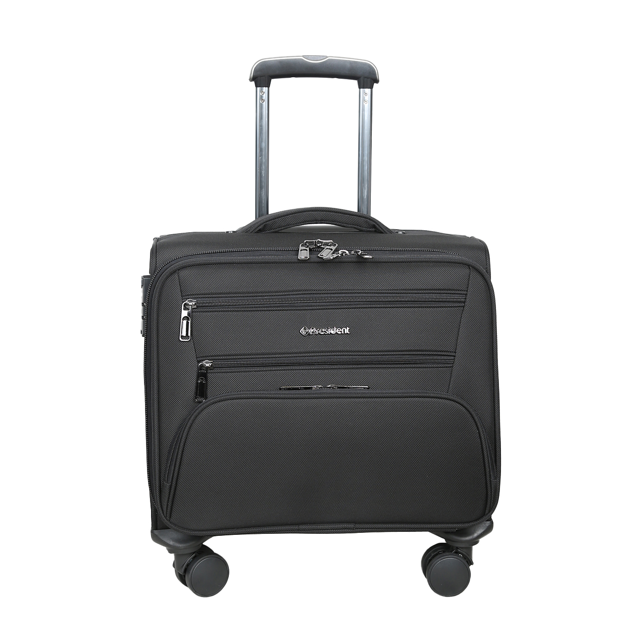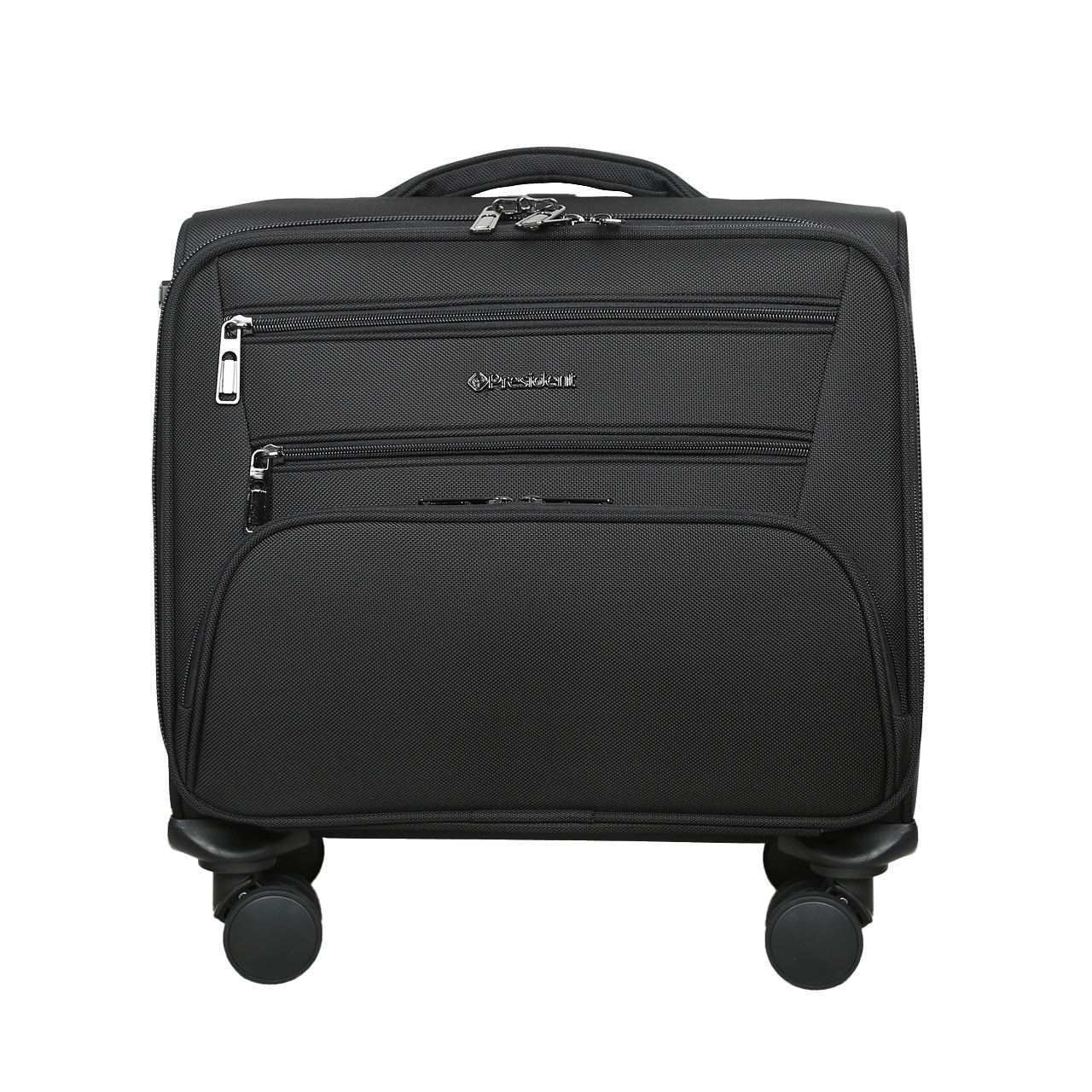 کیف خلبانی (پرواز) پرزیدنت مدل "SBP12780-17" دارای رنگ مشکی تجسمی از شیکپوشی و کارآمدی که با کیفیت عالی به صورت سفارشی در ایران مونتاژ شده است. طراحی زیبا و وزن سبک آن را به همراهی ایدهآل برای سفرهای کاری و روزانه تبدیل کرده است. جنس باکیفیت و محفظههای متعدد، سازماندهی وسایل شما را آسان و سریع میکند. از طراحی بسیار زیبای این محصول که بگذریم، جنس این محصول از پارچه جودون با تراکم بافت بالا، بسیار مقاوم و محکم می باشد. دسته ترولی این محصول چهار استپ با طراحی بسیار مناسب از جنس آلیاژ مرغوب آلومینیوم ساخته شده است که بسیار مقاوم می باشد. چرخ های این محصول از جنس مواد پلاستیک و PU بوده که فوق العاده روان هستند و به صورت چهار چرخ گردان دبل 360 می باشد. زیپ اصلی این محصول نمره ده دوبل می باشد و دارای قفل رمزی TSA می باشد. طراحی داخلی این محصول بسیار شیک از آستر پلی استر می باشد و در قسمت درب آن یک فضای جای لپ تاپ حباب دار تا سایز 15 اینچ (35*25 سانتی متر) وجود دارد و در کناره ها در هر طرف یک بند وجود دارد که توسط سگک باز و بسته می شود که قسمت درب فضای اصلی زمانی که بندها بسته باشد مانع از رسیدن درب به زمین می شود. در قسمت جلوی کیف خلبانی پرزیدنت یک فضای زیپ دار وجود دارد که داخل آن پارتیشن دارد که به راحتی می توانید لوازم خود را به صورت تفکیکی بگذارید و جیب های جلو این امکان را می دهد که لوازم خرده ریز به راحتی در دسترس شما باشد. دسته بالای این محصول بسیار راحت و محکم و مقاوم که علاوه بر دوخت پرچ هم خورده است. این محصول مناسب برای سفرهای اداری و کوتاه و بهترین گزینه برای داخل کابین هواپیما می باشد. وزن این محصول 3600 گرم می باشد.